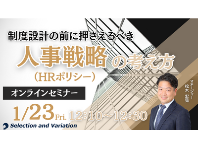 https://sele-vari.co.jp/ )は『制度設計の前に押さえるべき 人事戦略(HRポリシー)の考え方』セミナーを2026年1月23日(金)12:10~12:30に開催することをお知らせいたします。