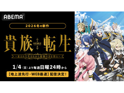 新しい未来のテレビ「ABEMA」は、2026年新作冬アニメ『貴族転生~恵まれた生まれから最強の力を得る~』を、2026年1月4日(日)から毎週日曜日夜24時より地上波先行・WEB最速配信いたします。