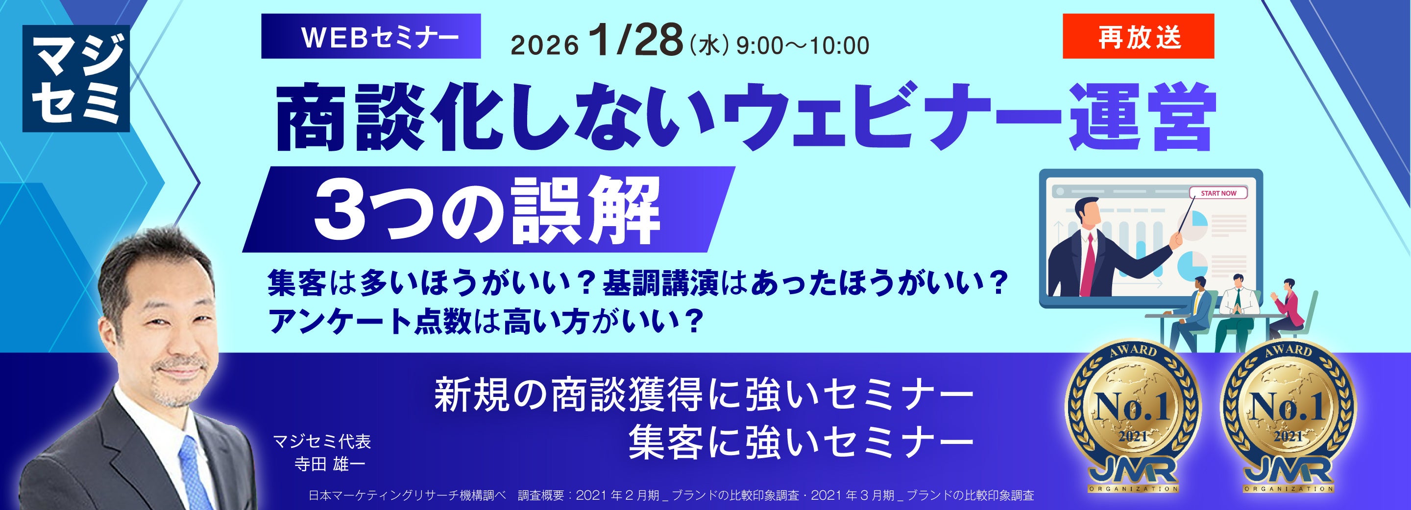 マジセミ株式会社は「【再放送】商談化しないウェビナー運営、3つの誤解」というテーマのウェビナーを開催します。