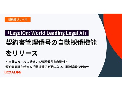 https://www.legalon-cloud.com/)にて、契約書の管理番号を自動で採番する機能をリリースしました 。本機能により、契約書管理担当者や事業部門の担当者が、契約書詳細画面を開いて一件ずつ管理番号を付与する手間を解消し 、契約管理業務の効率化を可能にします 。