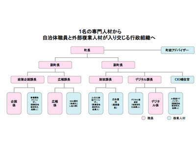 従来の、外部人材がスポット的に行政に関わる形ではなく、公務員と複業人材が、行政組織の一員として共に様々な課題に取り組む次世代型行政組織。