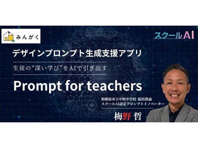 株式会社みんがく(本社:東京都新宿区、代表取締役:佐藤雄太)は、教師の授業デザインづくりを「伴走型」で支援するデザインプロンプト生成支援アプリ『Prompt for teachers』を、スクールAIのプラットフォーム上で提供開始しました。本アプリは、相模原市立中野中学校 総括教諭・梅野哲が開発したものです。