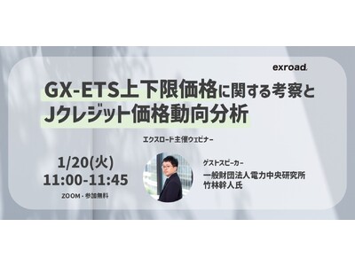 カーボンクレジット・排出量取引制度オールインワンデータベースを提供する株式会社exroad(エクスロード、本社:東京都港区、代表取締役:木村圭佑)は、「GX-ETS上下限価格に関する考察とJクレジット価格動向分析」と題し、