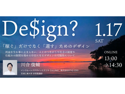 本ウェビナーでは、「De$ign? 『稼ぐ』だけでなく『還す』ためのデザイン」をテーマに、経済性が強く求められる現代のデザインにおいて、社会の制度や仕組みの隙間を埋め、人とのつながりを生み出す「デザインの新たな可能性」について講演いたします。