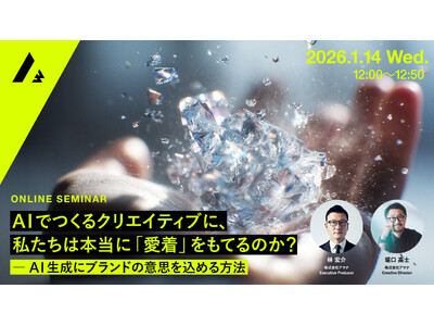 コミュニケーション変革をクリエイティブで実現する株式会社アマナ(本社:東京都品川区、代表取締役社長:金子剛章、以下「アマナ」)は、2026年1月14日(水)、『AIでつくるクリエイティブに、私たちは本当に「愛着」をもてるのか? ― AI生成にブランドの意思を込める方法』をテーマにウェビナーを開催します。