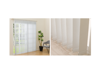 ニトリはより多くのお客様にバーチカルブラインドを気軽に楽しんでいただけるよう、既製バーチカルブラインドを、インテリアや部屋に合わせやすい2色4サイズ展開でラインアップしました。価格は、税込み6,990円からご用意しております。