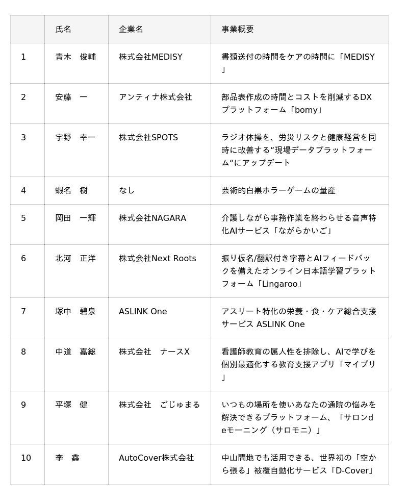 【4 登壇スタートアップ一覧(五十音順)※敬称略