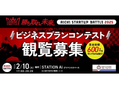 株式会社ツクリエ(本社:東京都千代田区 代表取締役:鈴木英樹 以下、ツクリエ)が愛知県から運営受託しているアクセラレーション&賞金総額600万円のビジネスプランコンテストプログラム「Aichi Startup Battle 2025」のビジネスプランコンテストを、日本最大のスタートアップ支援拠点「STATION Ai」(名古屋市昭和区)にて、2026年2月10日(火)開催。観覧者を募集いたします。