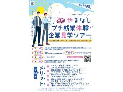 山梨県(知事:長崎幸太郎)は、山梨県内に本社または事業所を有する企業でのインターンシップや就業体験を通じて、県内大学生等の県内就職や県出身大学生等のU・Iターン就職を促進するため、受入企業と学生とのマッチングを積極的に支援しています。