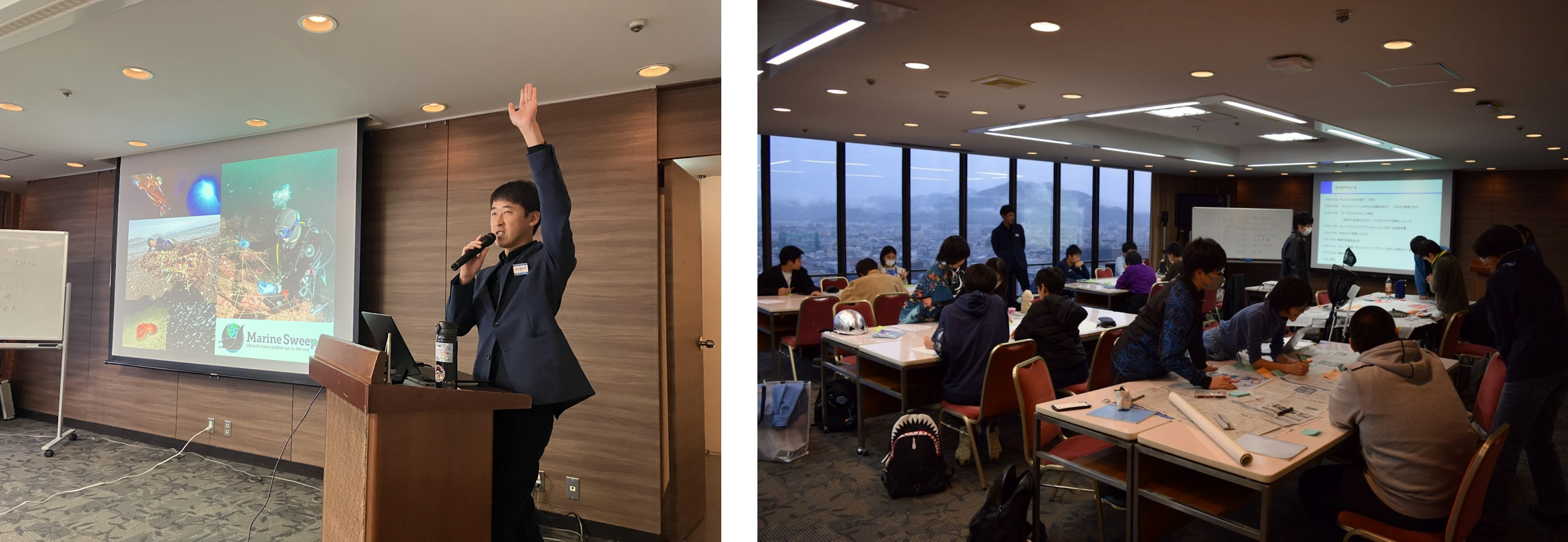 深海研究スーパーキッズ育成プロジェクトin駿河湾では、卒業生向けのプログラムとして、Marine Sweeper代表の土井佑太氏をお招きし、講演会およびワークショップを開催しました。講演では、土井さんの事業である、釣りの際に根掛かりで海に沈んでしまったルアーを回収し、再び価値あるものとして生まれ変わらせるアップサイクルの取り組みをご紹介いただきました。その後各チームに分かれ、海洋ごみを減らすアイデアについてのグループディスカッションを行いました。海洋ごみ問題を身近な視点から捉え直す内容に、子どもたちは高い関心を示し、海の未来を考える貴重な学びの機会となりました。