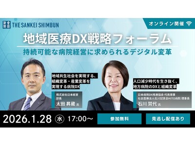 産経新聞社(東京都千代田区、社長・近藤哲司)は、セミナー「地域医療DX戦略フォーラム 持続可能な病院経営に求められるデジタル変革」を、2026年1月28日(水)17時からオンラインで開催。参加者を募集します。