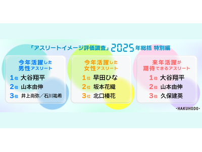 株式会社博報堂は、株式会社博報堂DYスポーツマーケティング、データスタジアム株式会社と共同で、2025年11月28日~12月1日に、アスリートの総合的なイメージを測定する「アスリートイメージ評価調査」2025年総括特別編を行いました。