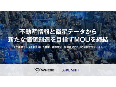 株式会社WHERE(本社:東京都文京区、代表取締役:阿久 津岳生 以下「WHERE」)は、人工衛星データを利活用した不動産関連ソリューションに取り組むため、MOUを締結したことをお知らせします。さらにWHEREは、スペースシフトが運営する事業共創プログラム「SateBiz」への参画を通じ、両者の連携をより一層加速させていきます。