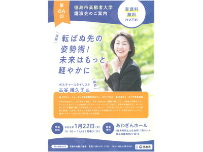 介護予防などに関する基本的な知識を普及啓発し、セルフマネジメントなどへの意識向上を図ることを目的として、つぎのとおり「第64回徳島市高齢者大学(講演会)」を開催します。