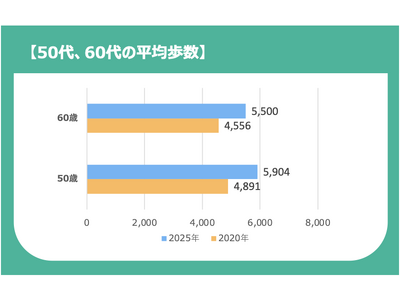 2025年の分析では、50代・60代の平均歩数がいずれも2020年比で
