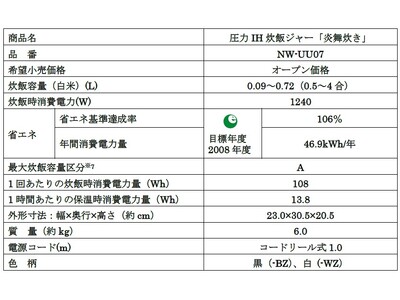 圧力IH炊飯ジャー「炎舞炊き」(NW-UU07)白(-WZ)