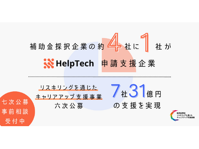 HelpTech株式会社(本社:福岡県福岡市、代表取締役:高橋 延明 以下「HelpTech」)は、経済産業省「リスキリングを通じたキャリアアップ支援事業」六次公募において、事業者登録申請支援を行った企業のうち、7社・31億1,989万円の採択を実現しました。