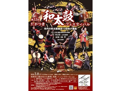 令和8年3月8日(日曜日)、高槻城公園芸術文化劇場で高校和太鼓部、和太鼓サークルなど高槻市内で活動する10団体が出演する「第22回たかつき和太鼓フェスティバル」が開催。ホール全体に響く和太鼓の重厚な音色による迫力のステージをぜひご堪能ください。