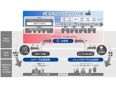 株式会社日立製作所(以下、日立)と三菱ケミカル株式会社(以下、三菱ケミカル)は、2025年12月より、三菱ケミカルの化成品、樹脂・機能商品、炭素素材などの製品群を生産する東海事業所(三重県四日市市)における設備管理業務のDX(デジタルトランスフォーメーション)に向けて、Lumada*1 3.0を体現するデジタルサービス「HMAX Industry」である、プラントの設備故障診断を支援するAIエージェント(以下、本AIエージェント)を用いたトラブルシューティングアシストの共同検証(以下、本共同検証)を開始しました。本AIエージェントは、生産設備の点検において、設備管理技術者が流体の移動や制御などに関わる主要設備である動力設備・制御装置などの故障を発見した際に、その原因と対策を提示するもので、これまでにディスクリート(組立加工)産業の設備への試験運用の実績*2がありますが、プロセス産業の設備向けに適用するのは、日立としては初めてです。本共同検証では、高温・高圧や有害物質を扱う現場で、熟練の設備管理技術者と同等以上の速さと正確さで故障の原因を特定し、的確な対策を提示することが可能か検証します。