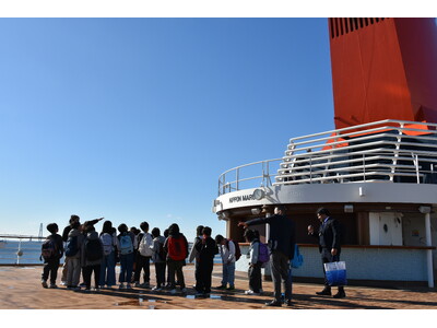 株式会社商船三井(社長:橋本 剛、本社:東京都港区、以下「当社」)および商船三井クルーズ株式会社(社長:向井恒道、本社:東京都港区、以下「商船三井クルーズ」)は、名古屋市教育委員会が推進するキャリア教育プログラム「ミラトラ」(註)の一環として、2025年12月18日、商船三井クルーズ運行船である「にっぽん丸」にて職場訪問を実施し、名古屋市立の小学校から約100名の児童が参加しました。