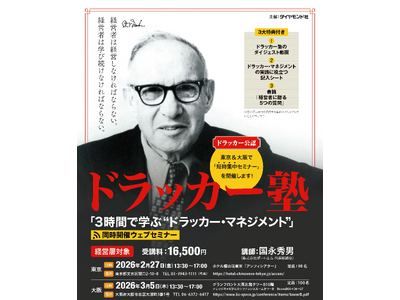 株式会社ダイヤモンド社(本社:東京都渋谷区)は、経営者・エグゼクティブを対象とした短時間集中セミナー「3時間で学ぶ"ドラッカー・マネジメント"」を、2026年2月27日(金)に東京(ホテル椿山荘東京)、3月5日(木)に大阪(グランフロント大阪)にて開催いたします 。また、遠方の方もご参加いただけるよう、ウェブセミナーも同時開催いたします 。