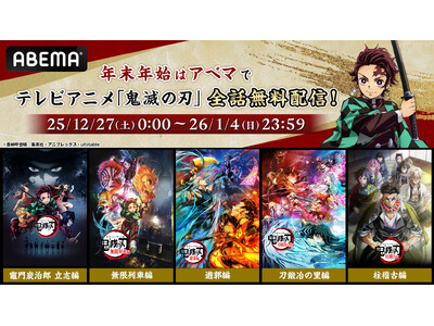 新しい未来のテレビ「ABEMA」は、テレビアニメ「鬼滅の刃」の全話を、2025年12月27日(土)から2026年1月4日(日)までの9日間にわたり、全話無料一挙配信いたします。