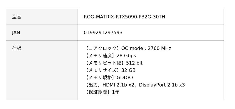 ROG-MATRIX-RTX5090-P32G-30TH | ASUS(エイスース) NVIDIA GeForce RTX 5090 クアッドファン搭載 グラフィックボード 30周年記念エディション