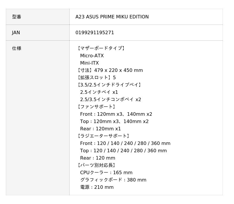 A23 ASUS PRIME MIKU EDITION | ASUS (エイスース) MicroATXマザーボード対応 PCケース 初音ミクエディション