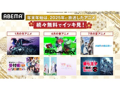 新しい未来のテレビ「ABEMA」は、300作品以上を無料一挙放送する特別企画「年末年始 アニメ無料大放出祭」の一環として、2025年の1月から7月に放送された話題アニメを、2025年12月27日(土)から1月4日(日)にわたり、続々と無料一挙放送いたします。
