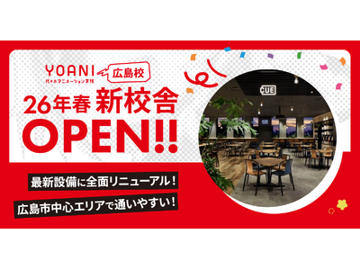 株式会社代々木アニメーション学院(本社:東京都千代田区 代表取締役社長:橋本 大輝)は、2026年春に代々木アニメーション学院 広島校を新校舎へ移転することをお知らせします。