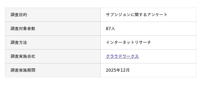 株式会社ゼロアクセル(本社:東京都千代田区、代表取締役:大福裕貴、以下「ゼロアクセル」)は、自社運営サイト『グロウナビ』にてサブシジョンについてのアンケート調査を行いました。
