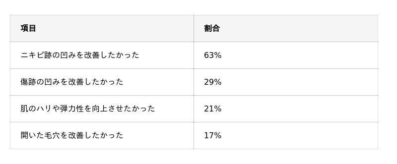 「ニキビ跡の凹みを改善したかった」と回答した人は全体の