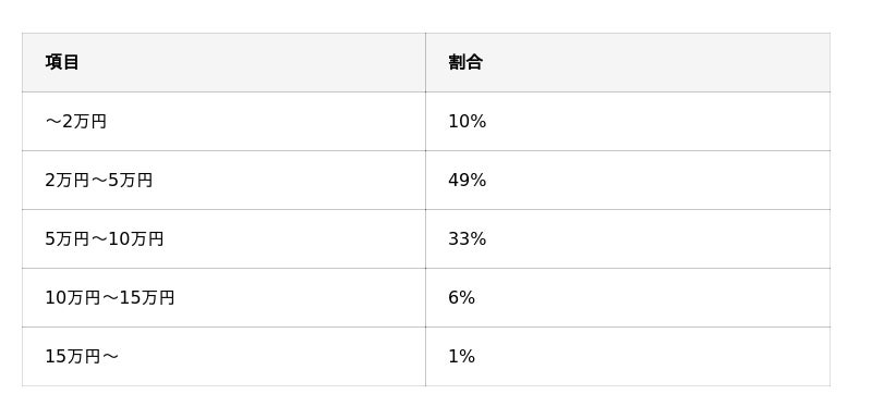 「2万円~5万円」と回答した人は全体の