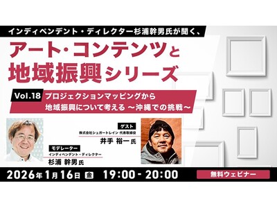 株式会社クリーク・アンド・リバー社(C&R社)は2026年1月16日(金)、アートやコンテンツを活用した地域振興に関心がある地域企業や自治体職員の方、コンテンツクリエイター、コンテンツ企業の方などを対象に、無料のオンラインセミナー「インディペンデント・ディレクター杉浦幹男氏が聞く、アート・コンテンツと地域振興シリーズvol.18 プロジェクションマッピングから地域振興について考える~沖縄での挑戦~」を開催します。