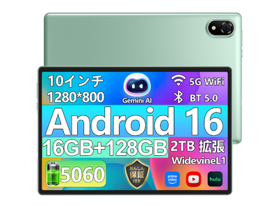 パフォーマンス面では、合計16GB RAM(4GB物理 + 12GB仮想拡張)と128GB内蔵ストレージ、最大2TB microSD拡張に対応。アプリ起動の高速化、スムーズなマルチタスク、ストレージ不足の解消を実現。5060mAh大容量バッテリーとType-C充電で長時間使用可能、出張・旅行に最適な大容量バッテリータブレットです。