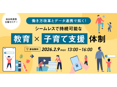 イシン株式会社(本社:東京都港区、代表取締役社長:西中 大史、証券コード:143A)が運営する公民共創の先進事例を紹介するメディア『自治体通信』は、2026年2月9日(月)に自治体通信主催セミナー『働き方改革とデータ連携で拓く!シームレスで持続可能な「教育」×「子育て支援」体制』を開催いたします。