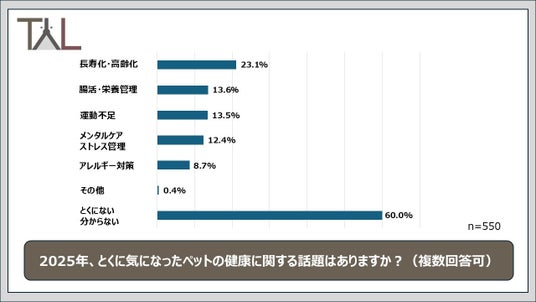 TYLでは、ペットが健康に暮らせる環境をつくり、ペットと飼い主ともに「幸せな生活」を送れるように「ペットの医療DX」を進めており、首都圏にて5店舗の動物病院の運営および往診サービスを提供しております。今回の調査は、2025年に飼い主がどのような情報に関心を寄せていたのか調査するため「2025年ペット関連トレンド調査」を実施しました。ペットも飼い主も、お互いに健康で幸せな暮らしができることを願っております。
