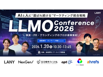 デジタルマーケティング支援を行う株式会社LANY(東京都渋谷区、代表取締役社長:竹内渓太)は、無料カンファレンス「LLMO conference 2026|AIと人に“選ばれ続ける”マーケティング統合戦略 - 検索・PR・ブランディングのプロが豪華集結 -」を、2026年1月20日(火)に開催いたします。