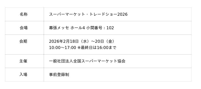 「スーパーマーケット・トレードショー2026」 展示スペースイメージ図 (場所:ホール4 小間番号:102)