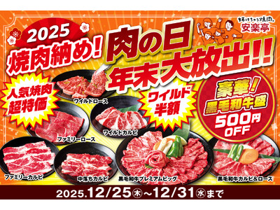 焼き肉レストラン安楽亭(本社:埼玉県さいたま市)は、日頃のご愛顧への感謝を込めた「肉の日 年末大放出!!」を、2025年12月25日(木)から12月31日(水)までの期間限定で開催いたします。