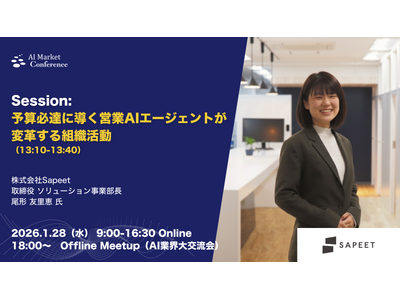 最適なAI会社やAIサービスの選定を支援するコンシェルジュサービス「AI Market」を運営するBizTech株式会社(東京都豊島区、代表取締役 森下 佳宏)が主催する、1月28日開催の国内最大級AIカンファレンス『AI Market Conference 2026』に登壇する株式会社Sapeet 尾形 友里恵氏の講演内容をお知らせ致します。