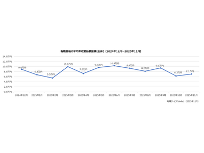 転職サービス「doda(デューダ)」(編集長:桜井 貴史)は、dodaエージェントサービスを利用して2025年11月に転職決定した個人の、転職前後の平均年収変動額と年収変動割合を発表いたします。
