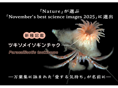 選出された映像は、吉川准教授らが2025年10月に新種として発表したツキソメイソギンチャクの映像です。このイソギンチャクは、深海にてヤドカリが使っている貝殻の上で暮らしており、そのヤドカリの「宿」となる構造物を作るという驚くべき代謝能力を持っています。さらには、自然下ではアカモントゲヤドカリが使っている貝殻の上からしか発見されておらず、特定のヤドカリととても強い共生関係を築いています。