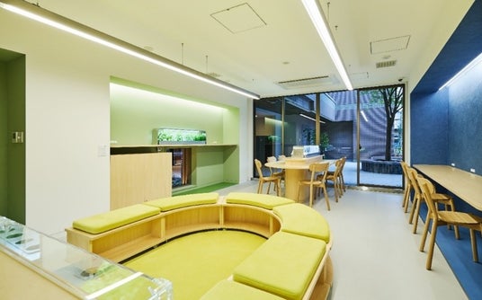 専有部は、子育てを快適にする広々とした玄関土間や、くつろぎと遊び場を兼ね備えた小上がりスペースなど、子育て世帯に優しいプランニングを行っています。アップサイクル建材を天井や壁に使用し、リノベーション工事で出た畳やカーテンの廃材をアップサイクルしたおもちゃをキッズコーナーに用意。SDGsを身近に感じられる仕掛けを作りました。