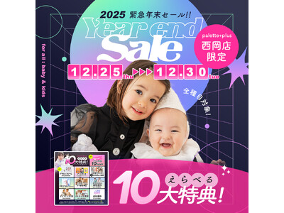 北海道でフォトスタジオを展開する有限会社三景スタジオ(本社:北海道旭川市、代表取締役:大西康弘)は、ベビー・キッズ専門スタジオ「Palette+plus(パレットプラス)札幌西岡店」にて、2025年12月25日(木)から12月30日(火)までの6日間限定で、お客様自身が特典を自由に組み合わせられる「2025緊急年末セール」を開催いたします。