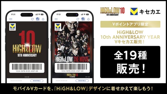この「HiGH&LOW 10th ANNIVERSARY YEAR」を記念して、「Vキセカエ」では、これまでの「HiGH&LOW」シリーズ7作品のポスターデザインや「HiGH&LOW 10th ANNIVERSARY」スペシャルロゴ、また「山王連合会」「MUGEN」「雨宮兄弟」といったチームロゴなど合計19種類で展開いたします。また、SHIBUYA TSUTAYAでは、10周年イヤーの幕開けとして「HiGH&LOW 10th ANNIVERSARY YEAR」のスペシャルコラボレーションカフェ(