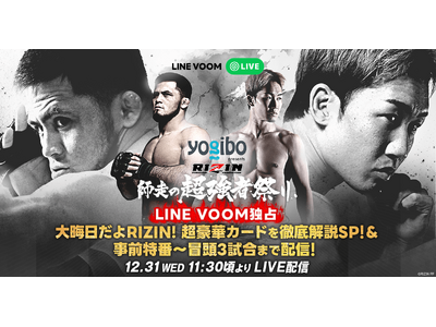 LINEヤフー株式会社は、「LINE」アプリ内のショート動画プラットフォーム「LINE VOOM」にて、2025年12月31日(水)11:30より、『Yogibo presents RIZIN師走の超強者祭り』直前の特別番組『大晦日だよRIZIN!超豪華カードを徹底解説SP!』を独占ライブ配信します。