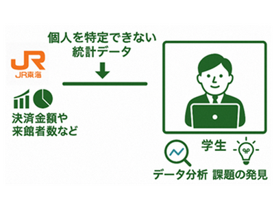 ・内容:学生がJR東海グループの売上データを分析し、ビジネスで求められる仮説設定やデータ分析を通じた課題発見、その解決策となる新規事業提案等を行う。