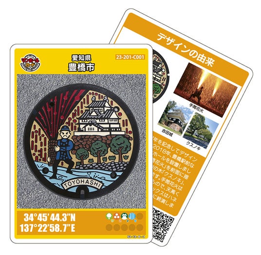 愛知県豊橋市の「マンホールカード」がリニューアルされ、2025年12月17日(水)から配布をスタートしました。今回のカードは、豊橋駅周辺に実際に設置されている市電や手筒花火などが描かれた3種類のカラーマンホールをモチーフにしたデザイン。カードを集めながら、本物のカラーマンホールもぜひまちなかで探してみてください!