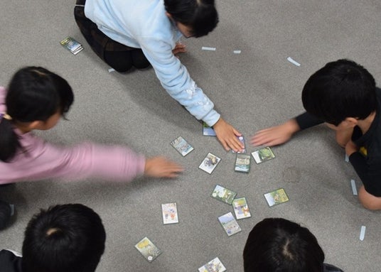 「いいとこ発見!とよはしカルタ」の発行20周年を記念して、職場体験の中学生が厳選したおすすめの札を缶バッジにしました。
